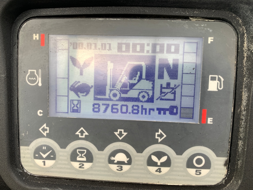 Коробка перемикання передач надiйна i найпоширенiша на данний час - гiдромеханiка (автоматична із гідротрансформатором). Меню перекладено англійською мовою для зручності. Обладнаний сучасним економічним дизельним двигуном Mitsubishi D04EG, 4-циліндровий, робочим об'ємом 3.3 літра і потужністю 49 к. с. який славиться своєю надійністю і встановлюється на автонавантажувачах по сьогоднішній день. Встановлено каретку бічного зміщення (side-shift), яка дозволяє зміщувати вантаж на вилах вліво та право на 10 см у кожну сторону, що суттєво прискорює процес роботи та робить його безпечнішим або ж на цю секцію можна встановити навісне обладнання таке як ковш. Колеса 12 діаметра на ведучiй осі, що покращує прохідність автонавантажувача і збільшує його кліренс.