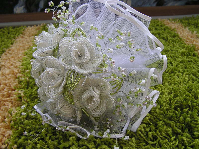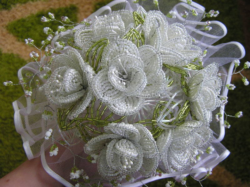 цветы из бисера, свадебные букеты из бисера на заказ.
